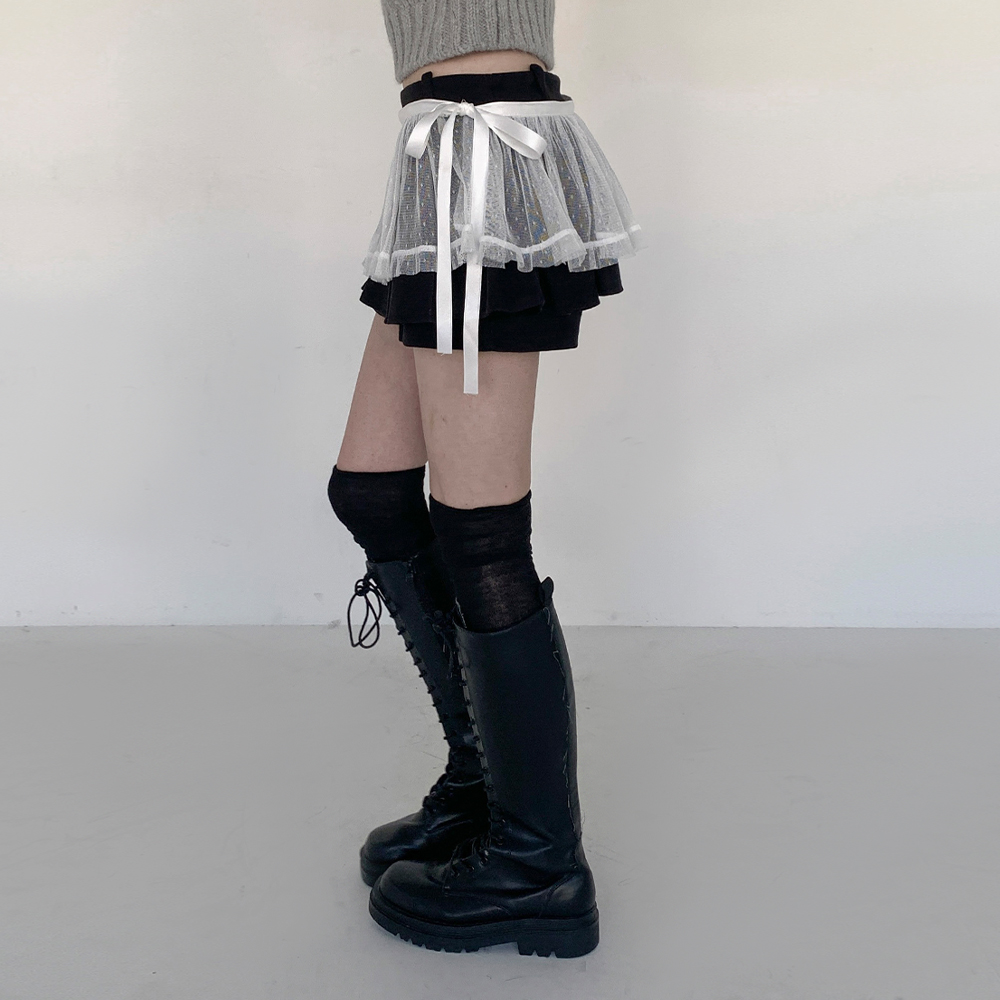 [코디추천/페미닌]가든 레이어드 미니 랩 스커트