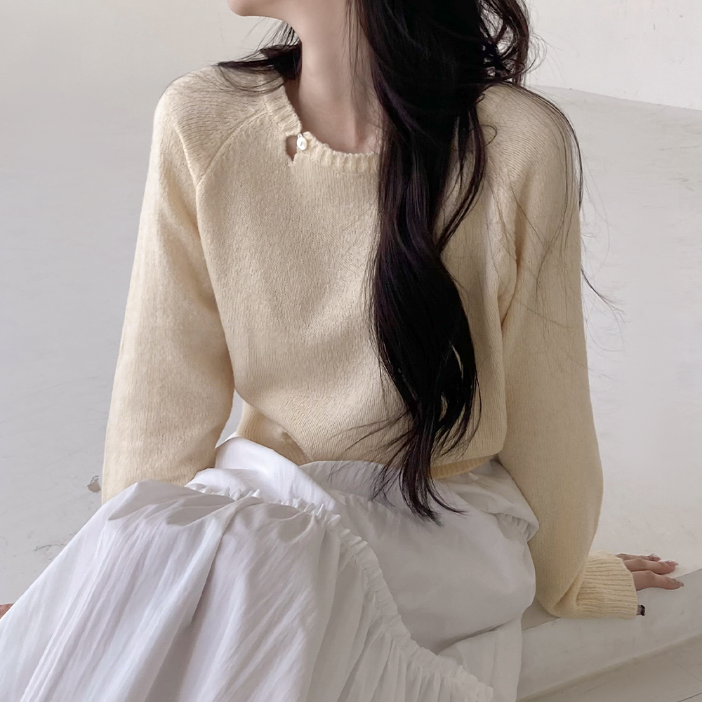 [봄색감💛]솔트 트임 버튼 울 니트